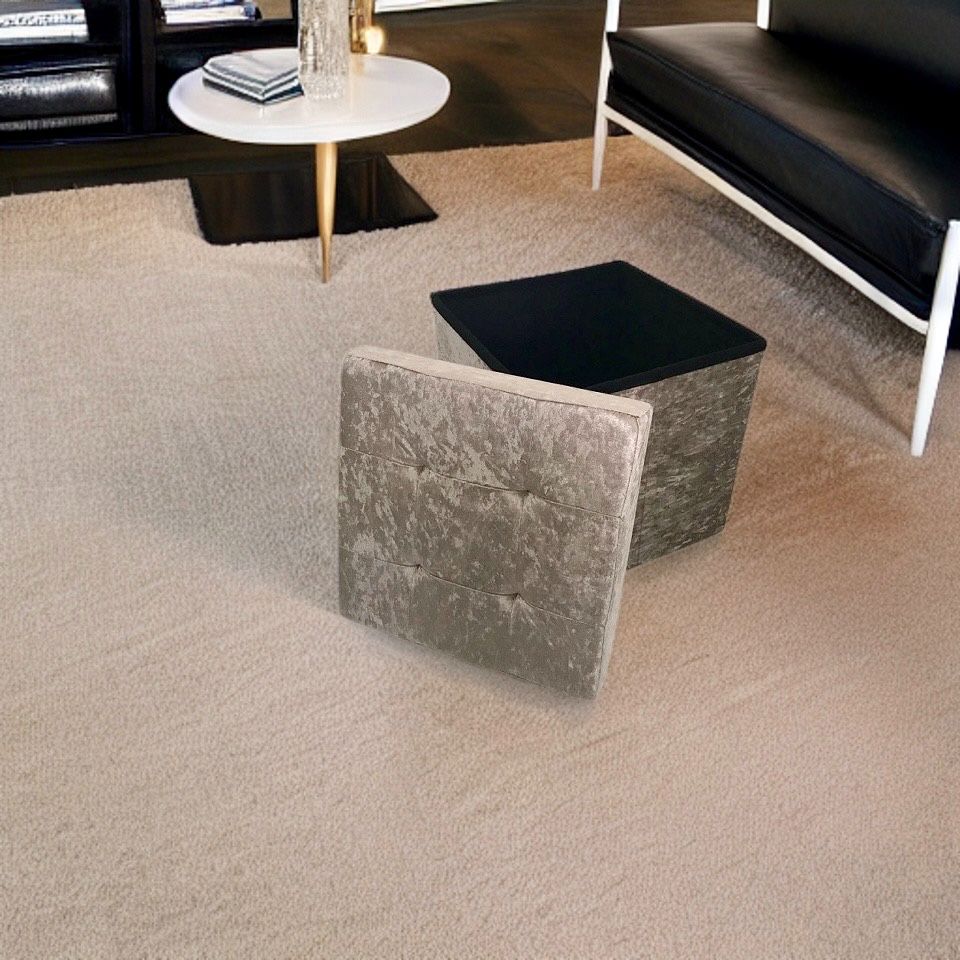 Crush Velvet Ottoman Storage Stool (15″ x 15″ x 15″) – Tufted Storage Box