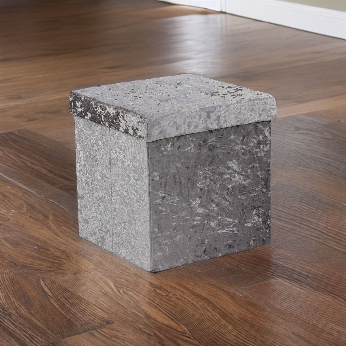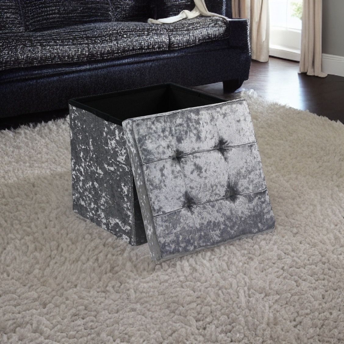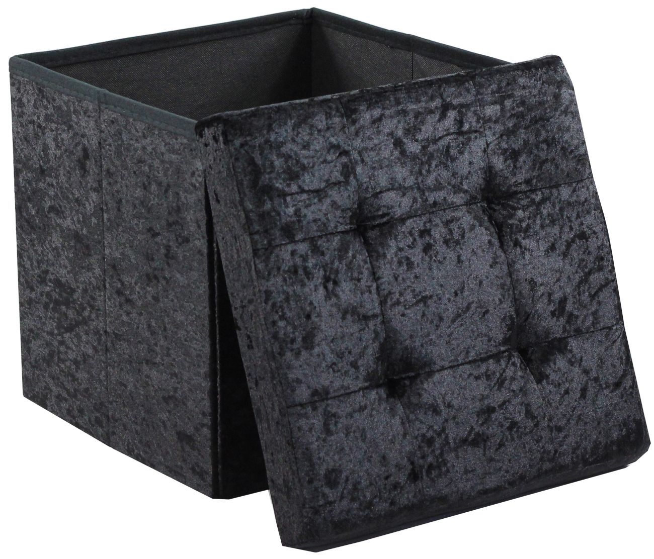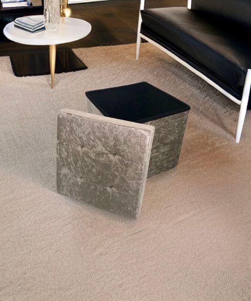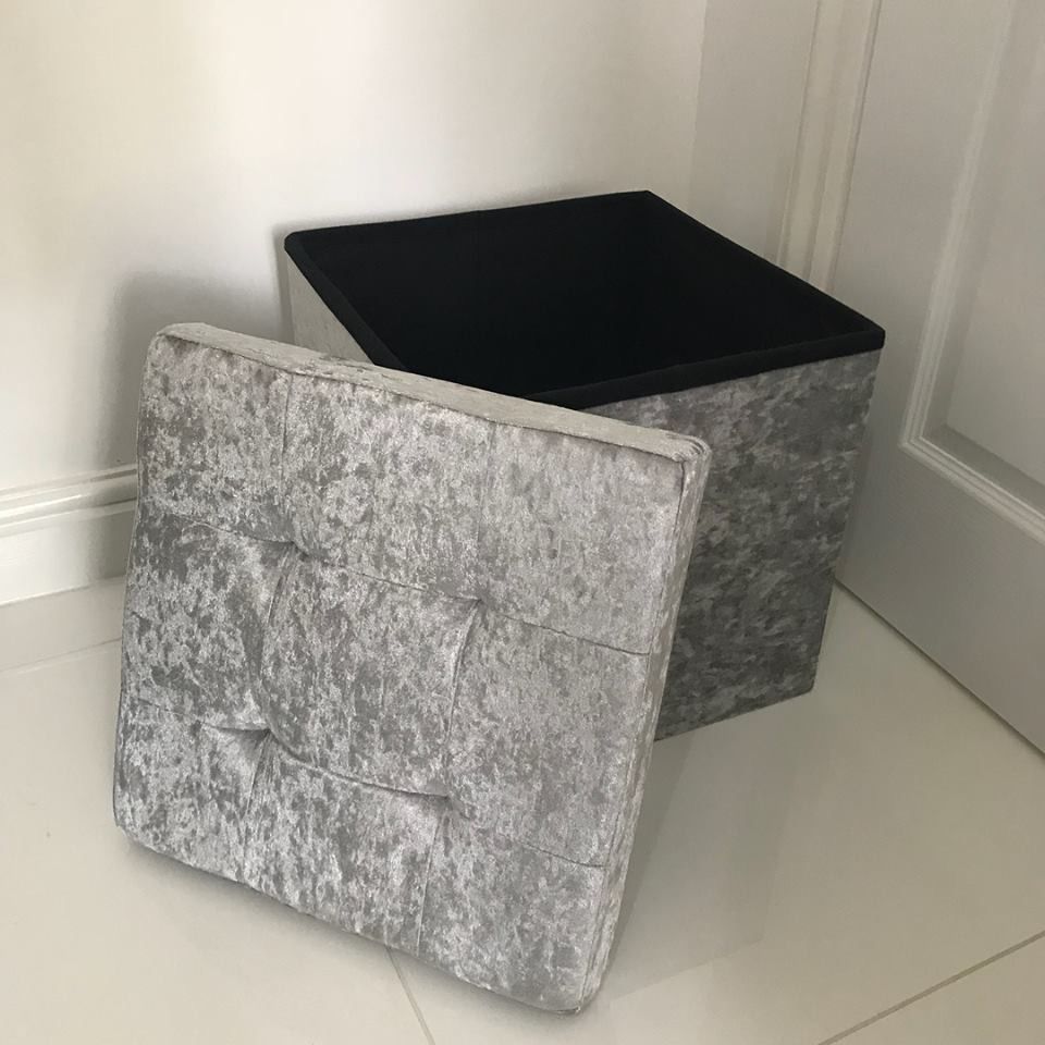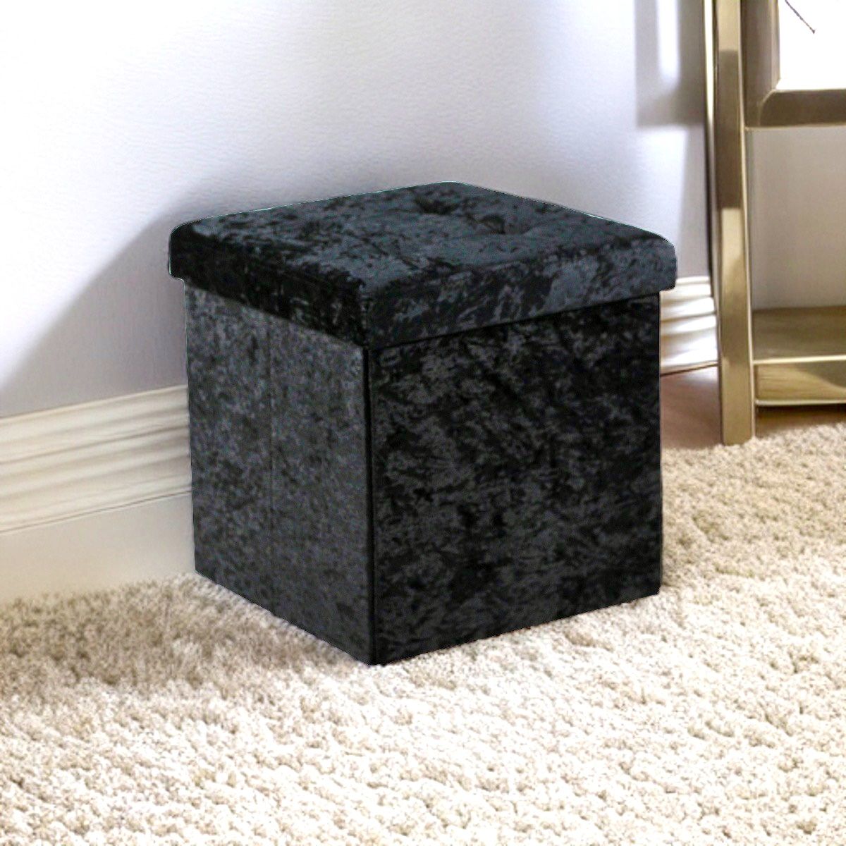 Crush Velvet Ottoman Storage Stool (15″ x 15″ x 15″) – Tufted Storage Box